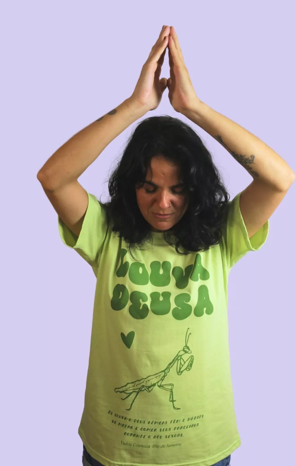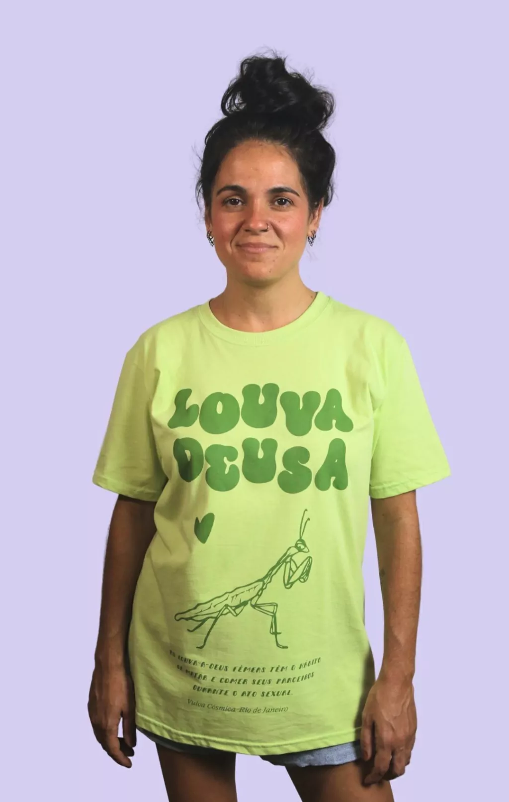 Tshirt na verde claro e estampa serigráfica Louva Deusa